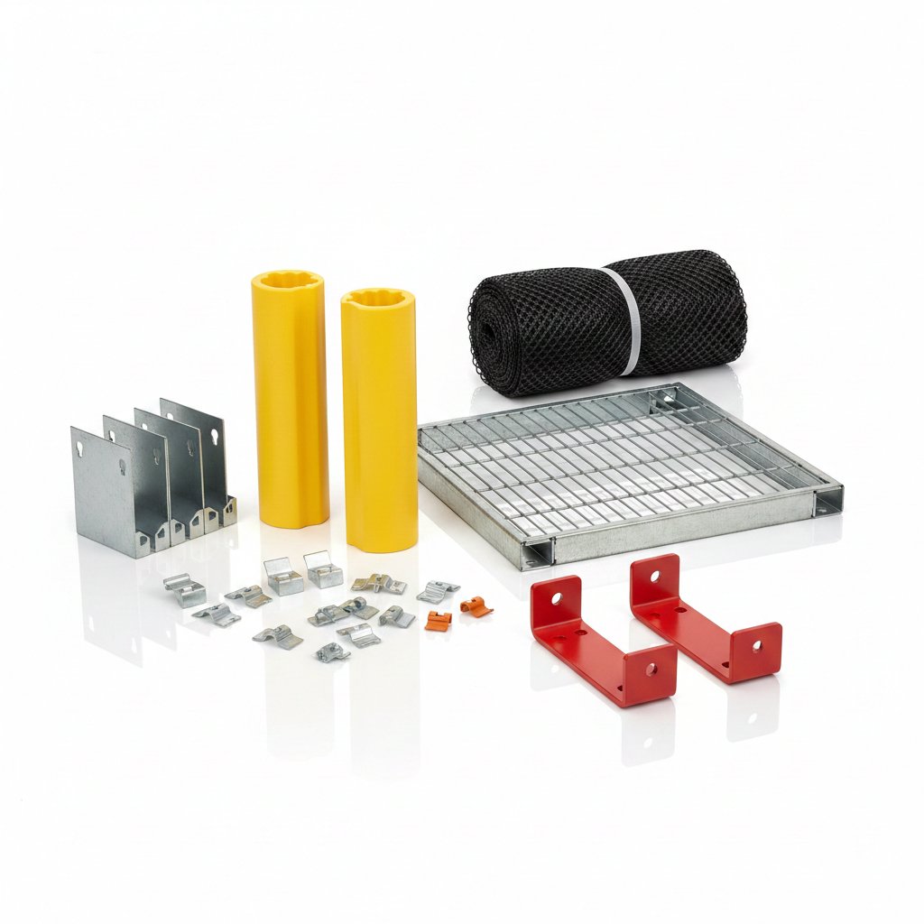 Optimize your warehouse storage and enhance operational efficiency with our comprehensive range of pallet rack accessories. Designed to complement your pallet racking system, these accessories provide solutions for safety, organization, and durability. From column protectors that shield your racks from accidental impacts, to wire decking and pallet stops that ensure secure and stable storage, each accessory is engineered to improve workflow and protect inventory. Additional features like shelf dividers, beam clips, and safety netting help maintain a neat and accessible arrangement of goods, while end-of-aisle guards and anchors ensure structural stability and reduce potential damage in high-traffic areas. Label holders and signage accessories further enhance warehouse organization, making it easier for staff to locate and manage inventory efficiently