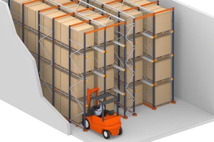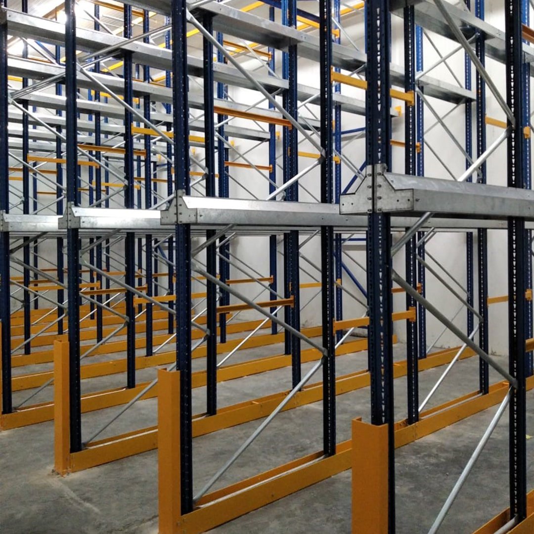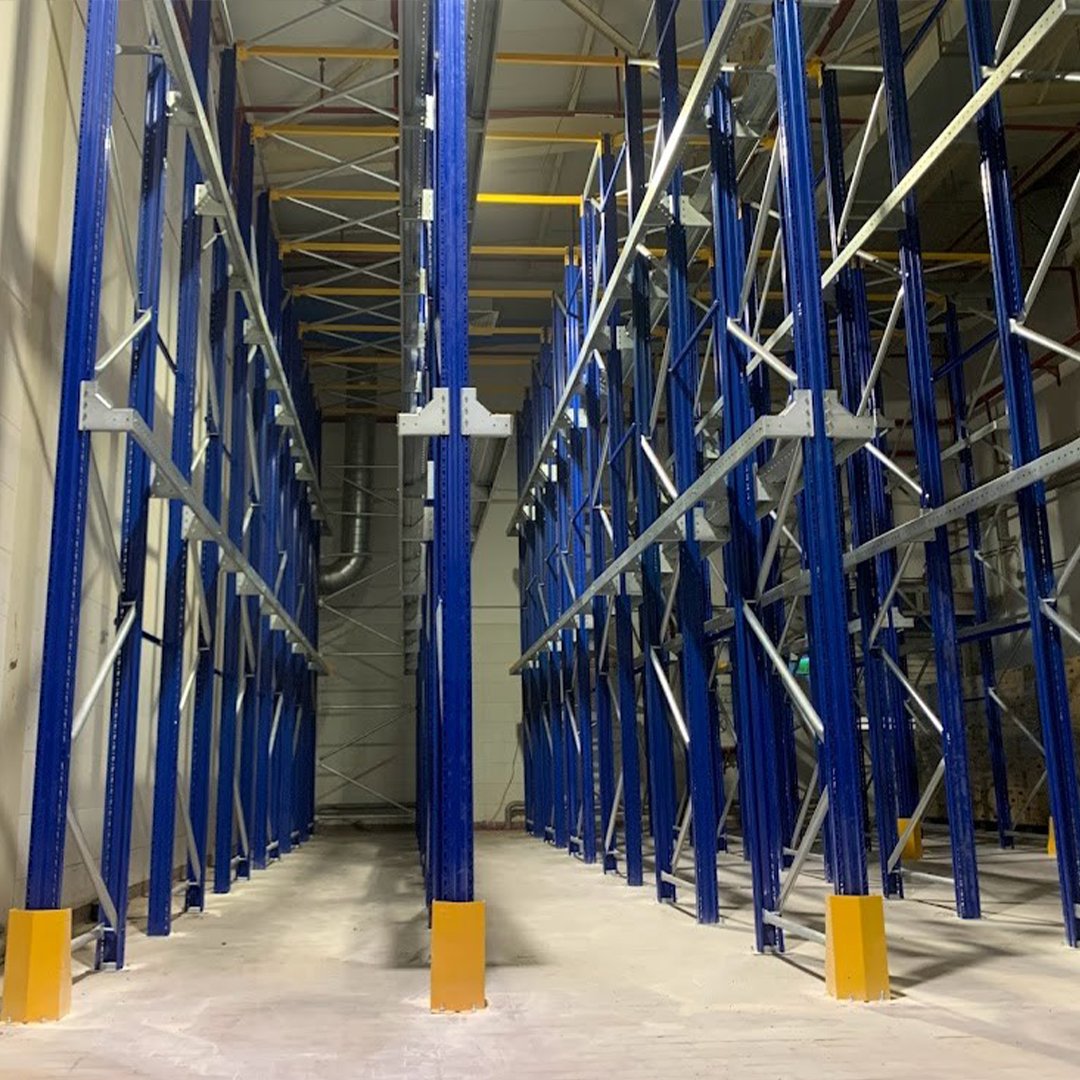 The Drive-In Racking System is a high-density storage solution designed to maximize warehouse space by eliminating aisles between racks. Instead of multiple aisles, forklifts drive directly into the racking structure to load and retrieve pallets, allowing for the storage of a large number of pallets within a compact footprint. This system operates on a Last-In, First-Out (LIFO) principle, making it ideal for storing homogeneous products with low SKU variety and high pallet quantities per item. Pallets are stored on support rails rather than beams, enabling forklifts to place loads deep within the racking lanes while maintaining a high level of storage density. Drive-In racking is particularly suitable for cold storage facilities, food and beverage warehouses, and industries where maximizing cubic space is critical. Its robust and impact-resistant design ensures safe operation even in demanding environments. By combining high storage density with reduced aisle requirements, the Drive-In Racking System offers a cost-effective solution for warehouses seeking maximum space utilization and efficient bulk storage.