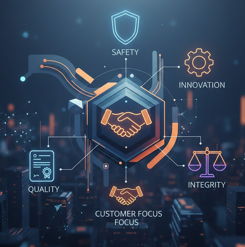 Quality: Delivering storage systems built with precision, durability, and certified materials. ..Safety: Every design prioritizes structural stability and safe daily operation….Innovation: Continuously developing modern solutions that enhance efficiency and optimize space. Customer Focus: Tailoring each system to meet the specific needs and goals of every client.Integrity: Operating with transparency, responsibility, and long-term reliability in every project.