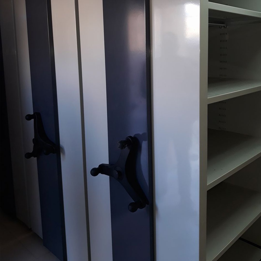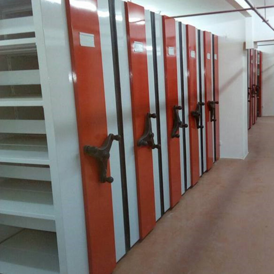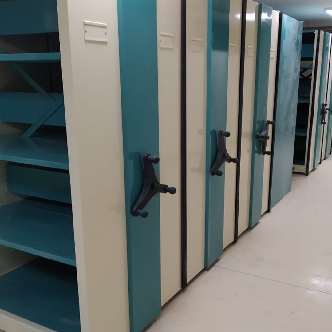 The Mobile Shelving System is a space-saving storage solution designed to maximize floor area by eliminating fixed aisles. The shelving units are mounted on mobile bases that run on floor-installed rails, allowing aisles to be opened only when access to stored items is required. This system provides high storage density while maintaining smooth operation, easy access, and enhanced safety. It is available in manual or electric operation to suit different storage needs and working environments.